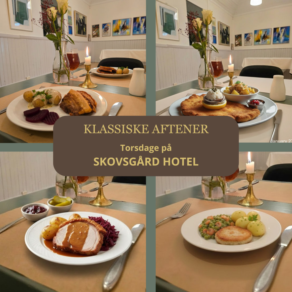 Torsdag aftener serveres der klassiske retter: Stegt flæsk, flæskesteg, Wienerschnitzel og karbonader.
